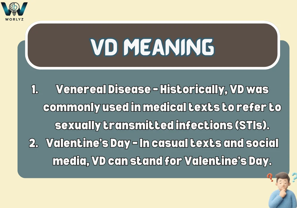 The abbreviation VD is widely seen in text messages, social media, chats, and even educational or medical contexts. While it may seem simple, its meaning changes depending on the situation. Understanding the VD meaning helps you interpret conversations accurately and use the term correctly when needed. VD can appear in casual texting, historical references, or medical discussions, which makes it a versatile abbreviation. This article explains all common meanings, examples, and contexts of VD in a clear, detailed way. What Does VD Mean Definition VD is an abbreviation that has multiple meanings depending on context: The meaning always depends on … Read more